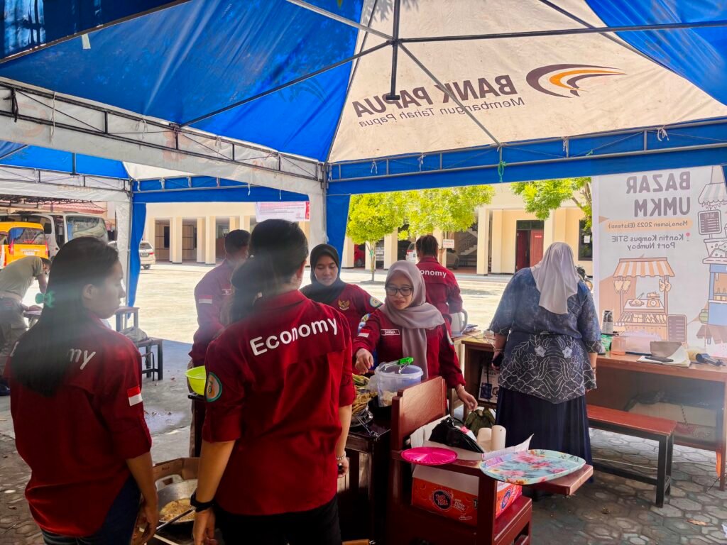 Kamis (16/10/2025), Program Studi Manajemen Sekolah Tinggi Ilmu Ekonomi Port Numbay Jayapura menggelar kegiatan Bazar UMKM Mahasiswa di lingkungan kampus sebagai bentuk nyata penerapan ilmu kewirausahaan serta dukungan terhadap pertumbuhan ekonomi kreatif di kalangan mahasiswa.