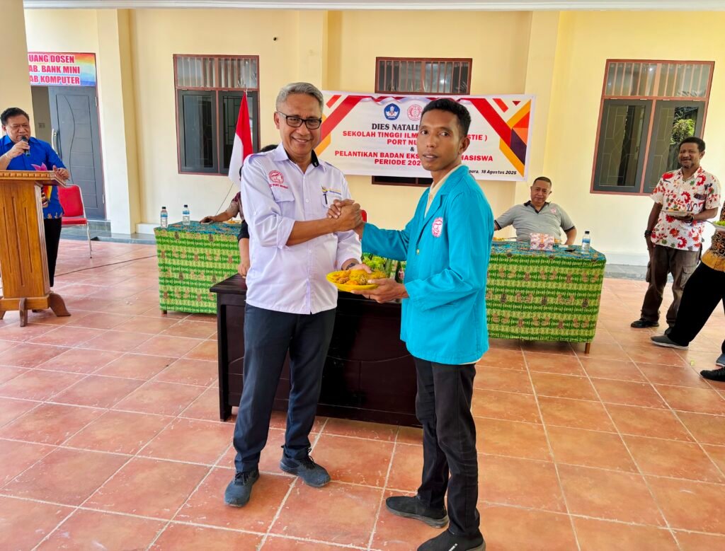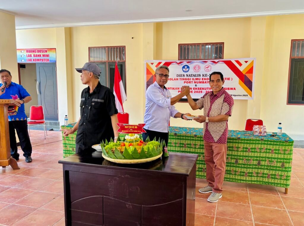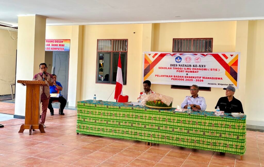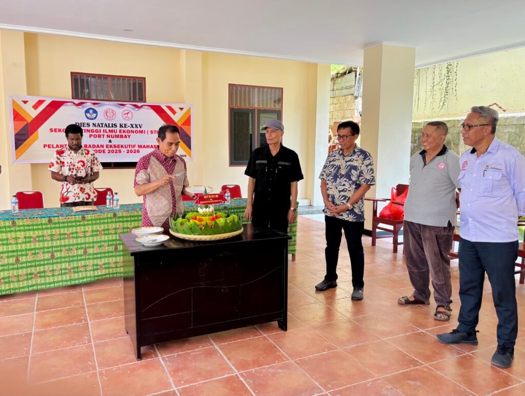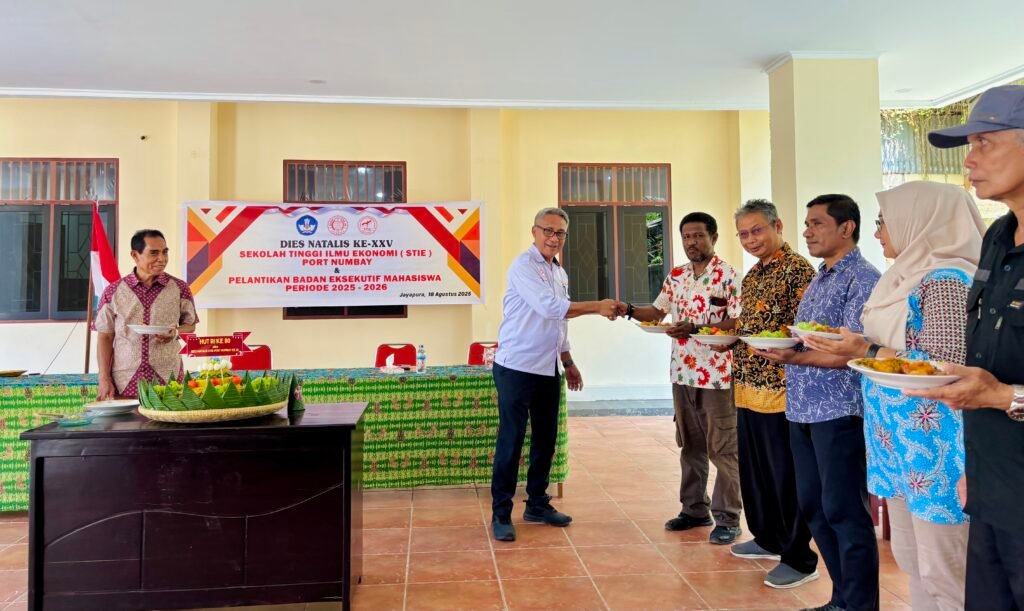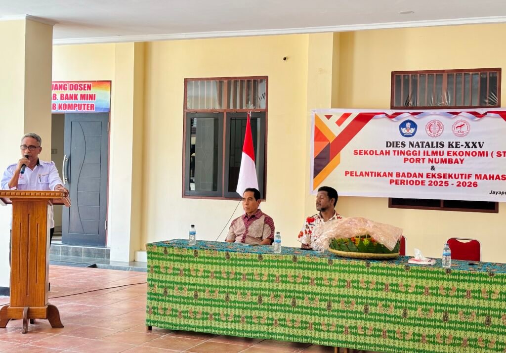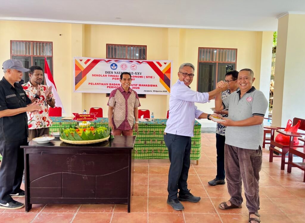 Sekolah Tinggi Ilmu Ekonomi Port Numbay Jayapura menggelar perayaan Dies Natalis ke-25 yang dimeriahkan dengan rangkaian kegiatan seremonial, termasuk pemotongan tumpeng sebagai bentuk syukur dan pelantikan Badan Eksekutif Mahasiswa (BEM) periode 2025/2026. Kegiatan berlangsung khidmat namun penuh keakraban di kampus yang dihadiri civitas akademika.