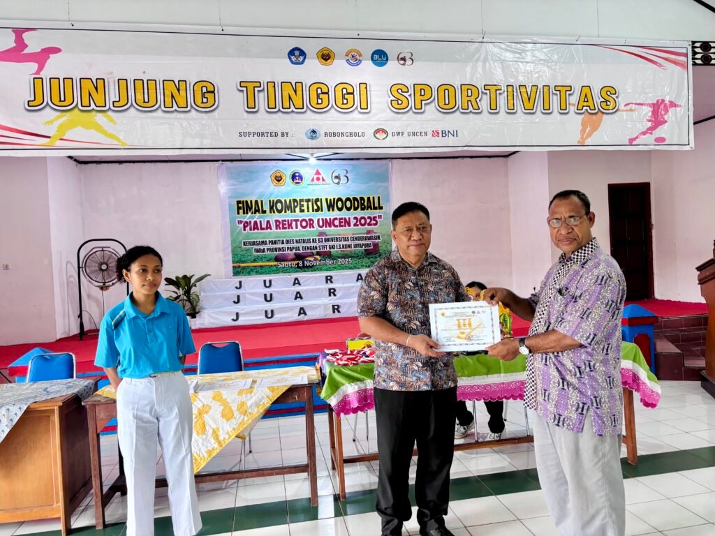 Senin, 1 Desember 2025 — Suasana penuh antusiasme mewarnai acara penyerahan hadiah Kompetisi Woodball Piala Rektor Universitas Cenderawasih (Uncen) 2025 yang digelar di Aula STFT GKI I.S.KIJNE Abepura. Dalam ajang bergengsi yang mempertemukan para atlet woodball tersebut, STIE Port Numbay Jayapura kembali menorehkan prestasi membanggakan dengan berhasil meraih Juara Umum II.
