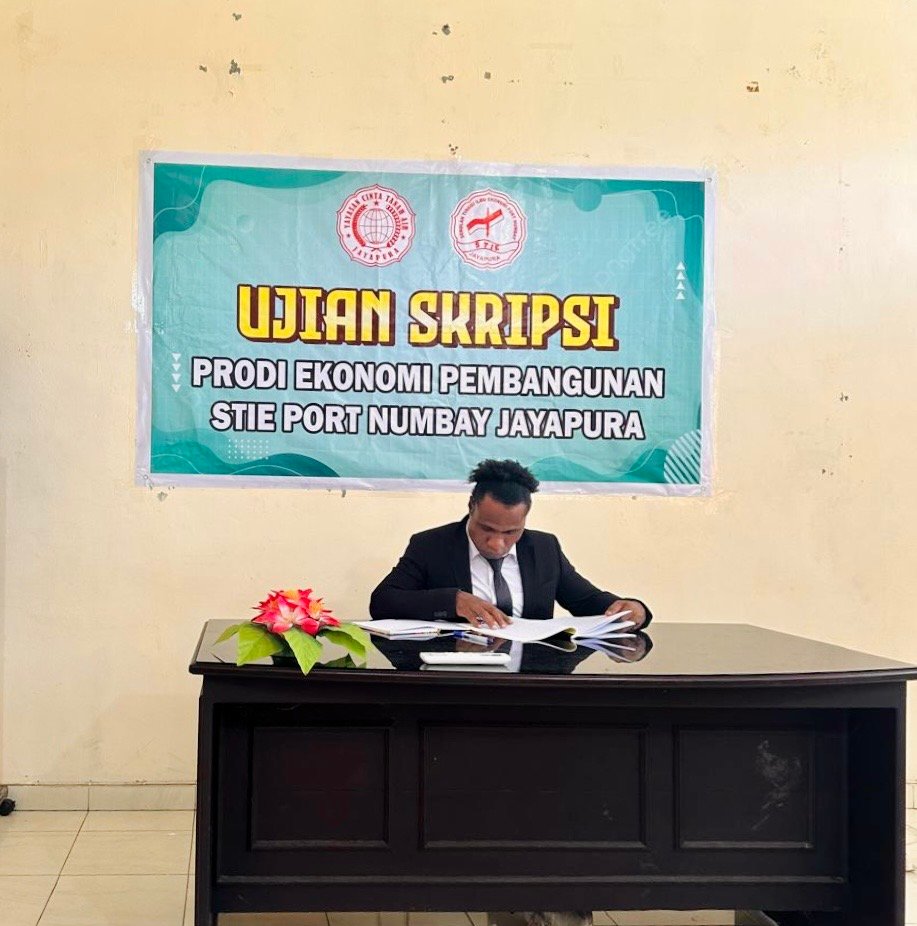 Program Studi Ekonomi Pembangunan Sekolah Tinggi Ilmu Ekonomi Port Numbay Jayapura menggelar ujian skripsi bagi mahasiswa tingkat akhir, di ruang kuliah II gedung pascasarjana. Kegiatan ini menjadi puncak perjalanan akademik mahasiswa sebelum dinyatakan lulus dan menyandang gelar Sarjana Ekonomi (SE).