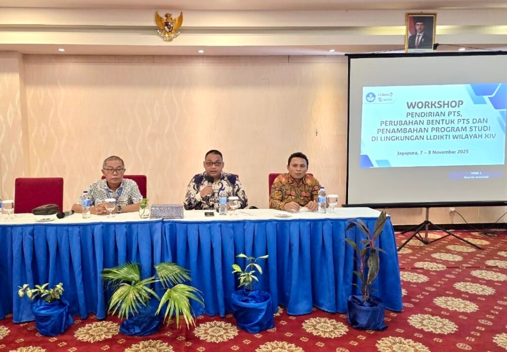 Sentani, 7 November 2025 — Operator STIE Port Numbay Jayapura, Eko Budiarto MM, mendapat kehormatan menjadi narasumber pada kegiatan Workshop Pendirian Perguruan Tinggi Swasta (PTS), Perubahan Bentuk PTS, dan Penambahan Program Studi yang diselenggarakan oleh LLDIKTI Wilayah XIV Papua dan Papua Barat. Kegiatan ini berlangsung di Hotel Horex Sentani, pada Jumat (7/11/2025).