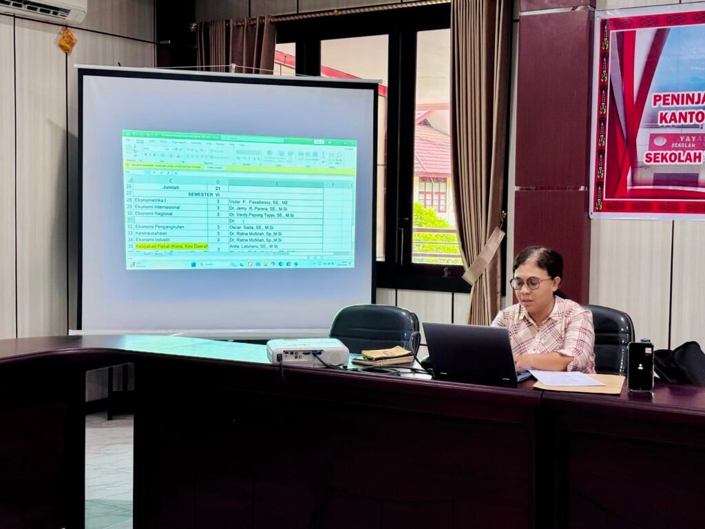 Ketua Program Studi Ekonomi Pembangunan, Charlotta Stella Kakisina, ST., MM menyampaikan bahwa rapat penetapan dosen pengampu merupakan bagian dari persiapan awal sebelum memasuki semester baru.