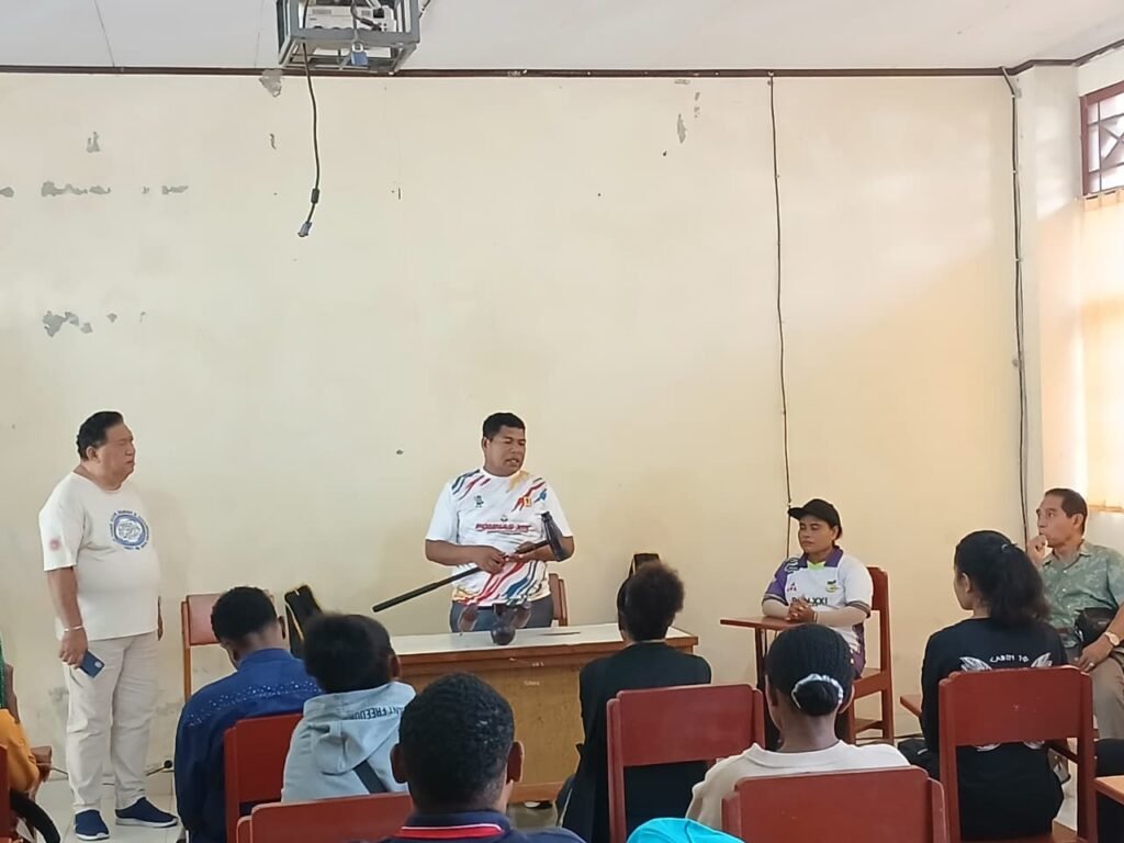 Dalam sesi sosialisasi, Dr. Daniel Womsiwor tampil bukan sekadar sebagai narasumber, tetapi juga sebagai sosok inspiratif yang menyalurkan semangat olahraga kepada generasi muda Papua. Dengan gaya penyampaian yang komunikatif dan penuh semangat, beliau memaparkan perjalanan woodball dari awal kemunculannya hingga menjadi olahraga yang diakui di tingkat internasional.