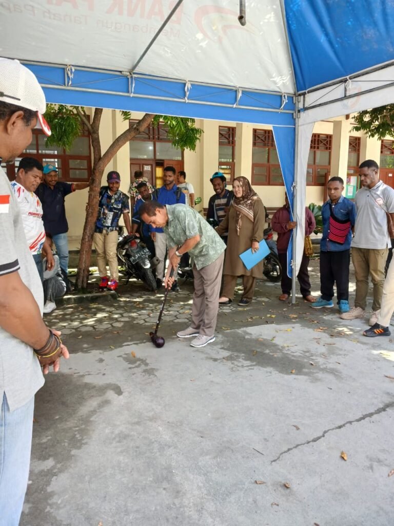 Kegiatan yang berlangsung di halaman kampus STIE Port Numbay ini menghadirkan sosok penting di dunia olahraga Papua, Dr. Daniel Womsiwor, S.Pd., M.Fis., AIFO, yang saat ini menjabat sebagai Wakil Dekan III FIK UNCEN sekaligus Ketua Umum Indonesia Woodball Association (IWbA) Provinsi Papua.