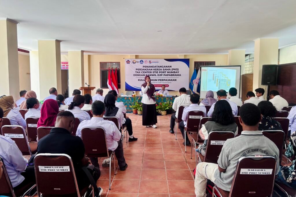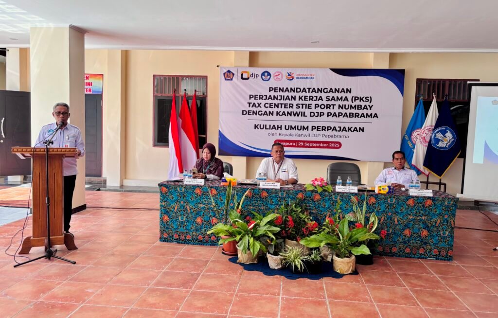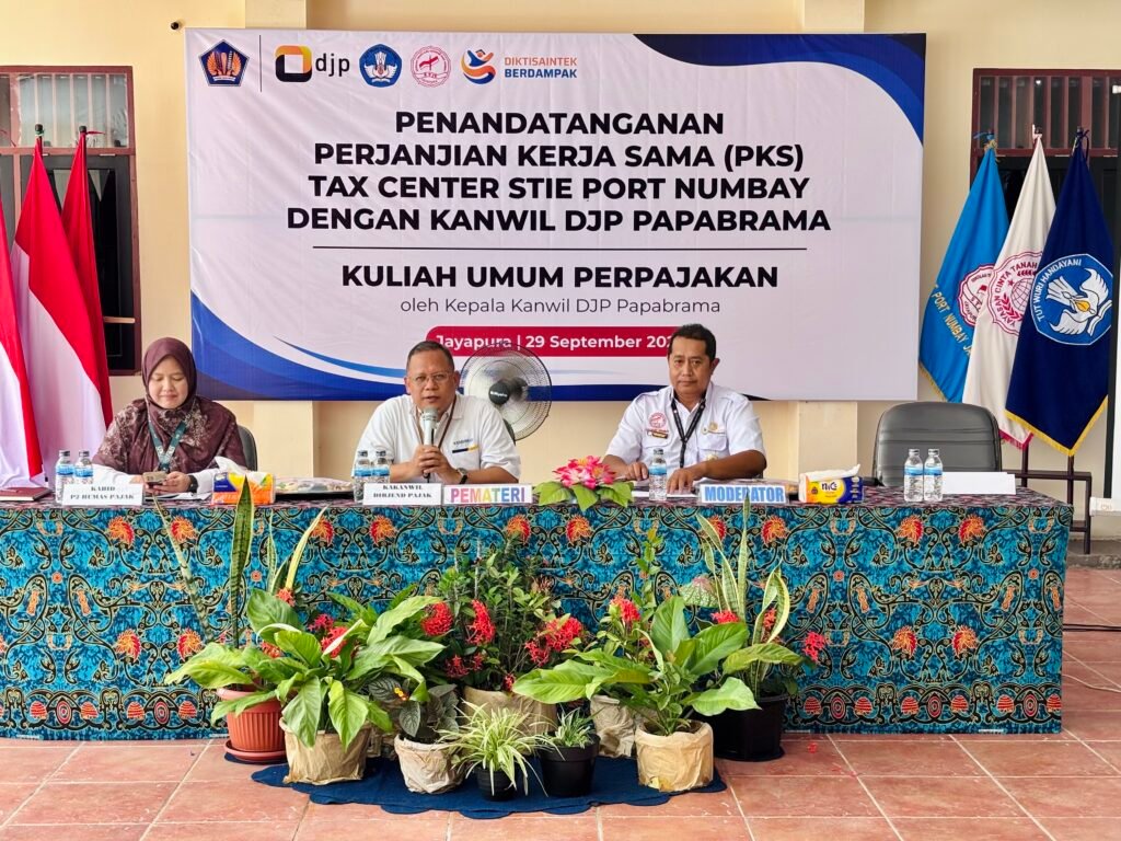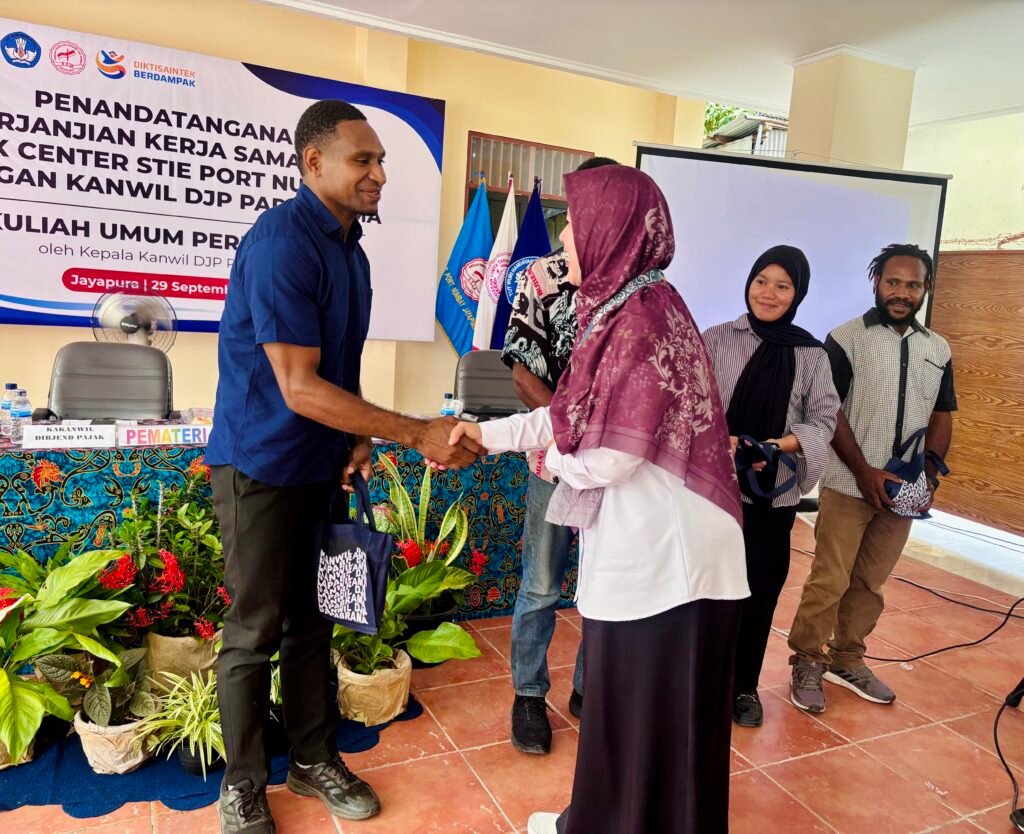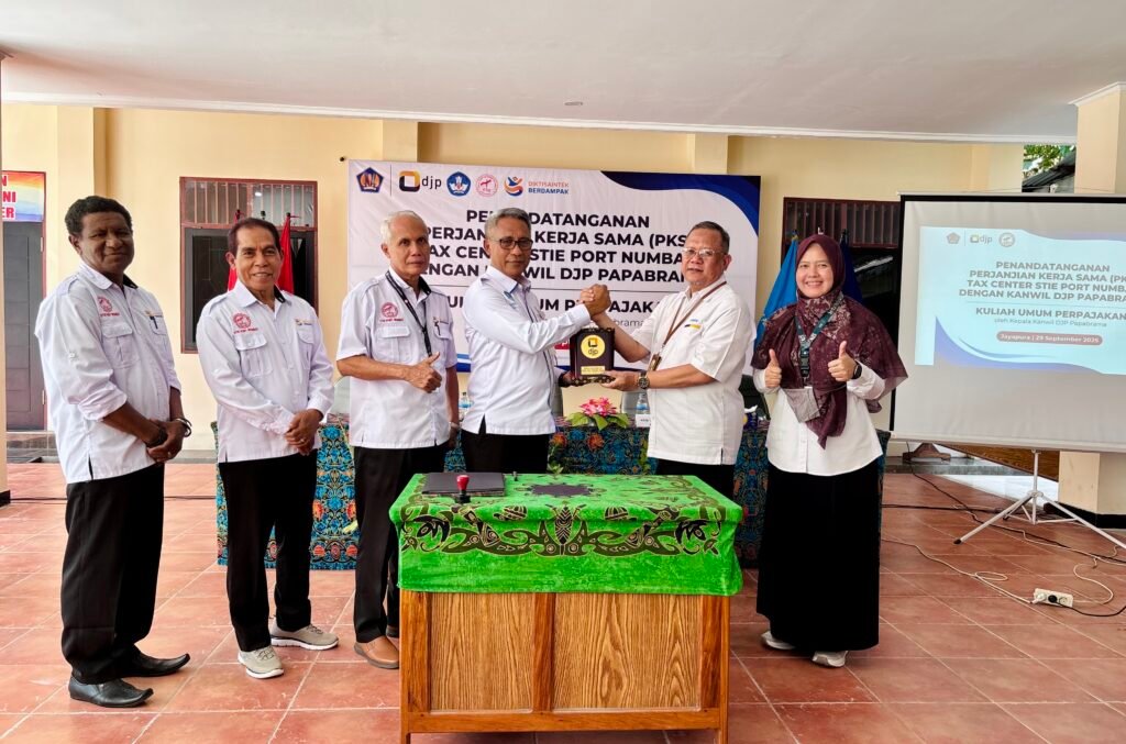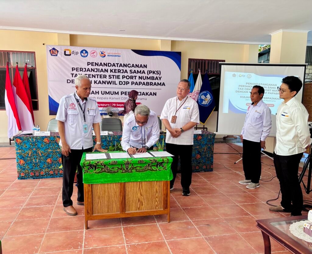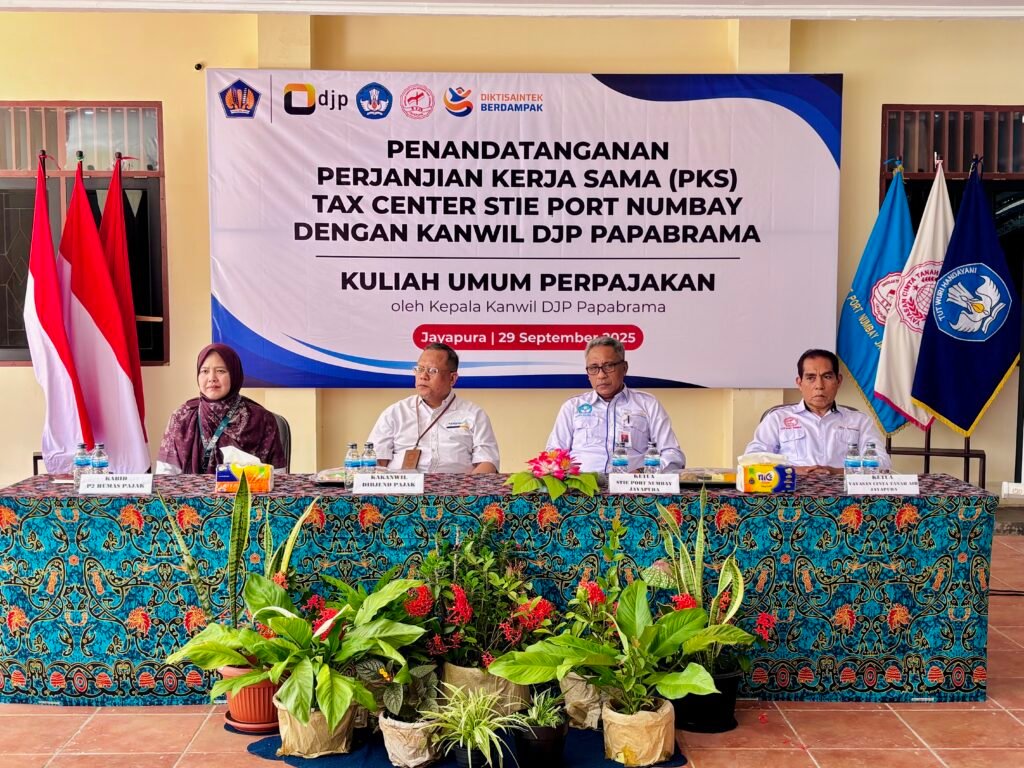 Sekolah Tinggi Ilmu Ekonomi Port Numbay Jayapura resmi menjalin kerja sama dengan Kantor Wilayah Direktorat Jenderal Pajak (DJP) Papua, Papua Barat, dan Maluku (Papabrama) melalui penandatanganan Perjanjian Kerja Sama (PKS) pembentukan Tax Center. Acara berlangsung di kampus STIE Port Numbay yang dihadiri oleh pimpinan kampus, pejabat DJP Papabrama, dosen, staf, serta mahasiswa pada Senin (29/9/2025).